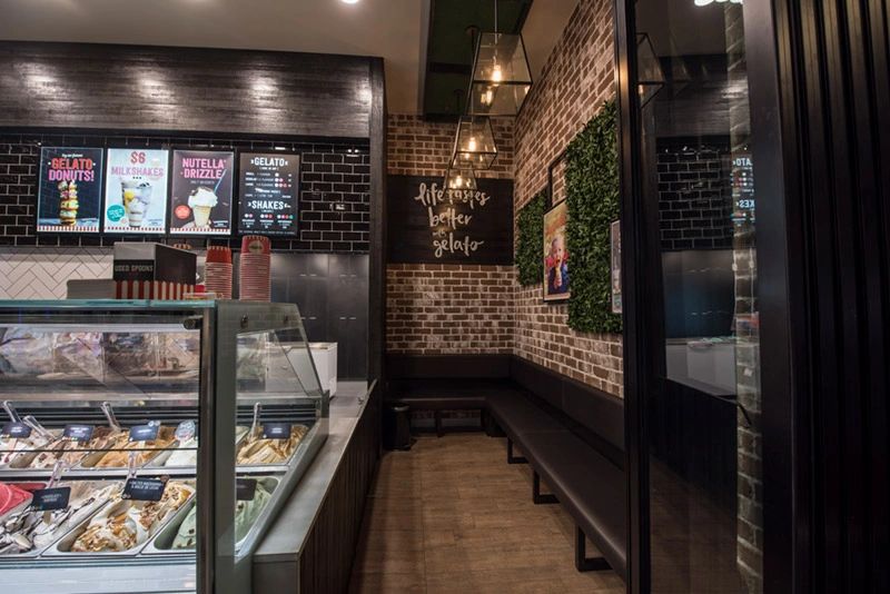 Stylish and contemporary fitout, featuring exposed brick walls that are actually tiles, custom made banquet seating and filament pendant lights that compliment the design features.