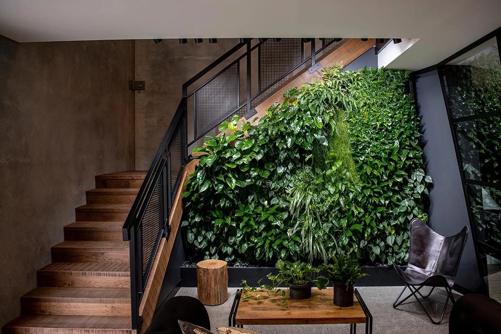 Powder coated steel frames glass windows looking through to an impressive boardroom showcasing our custom built meeting table and brick face feature wall. A fully functional yet visually appealing kitchen, custom made work benches keeping this office space clean and organised.
